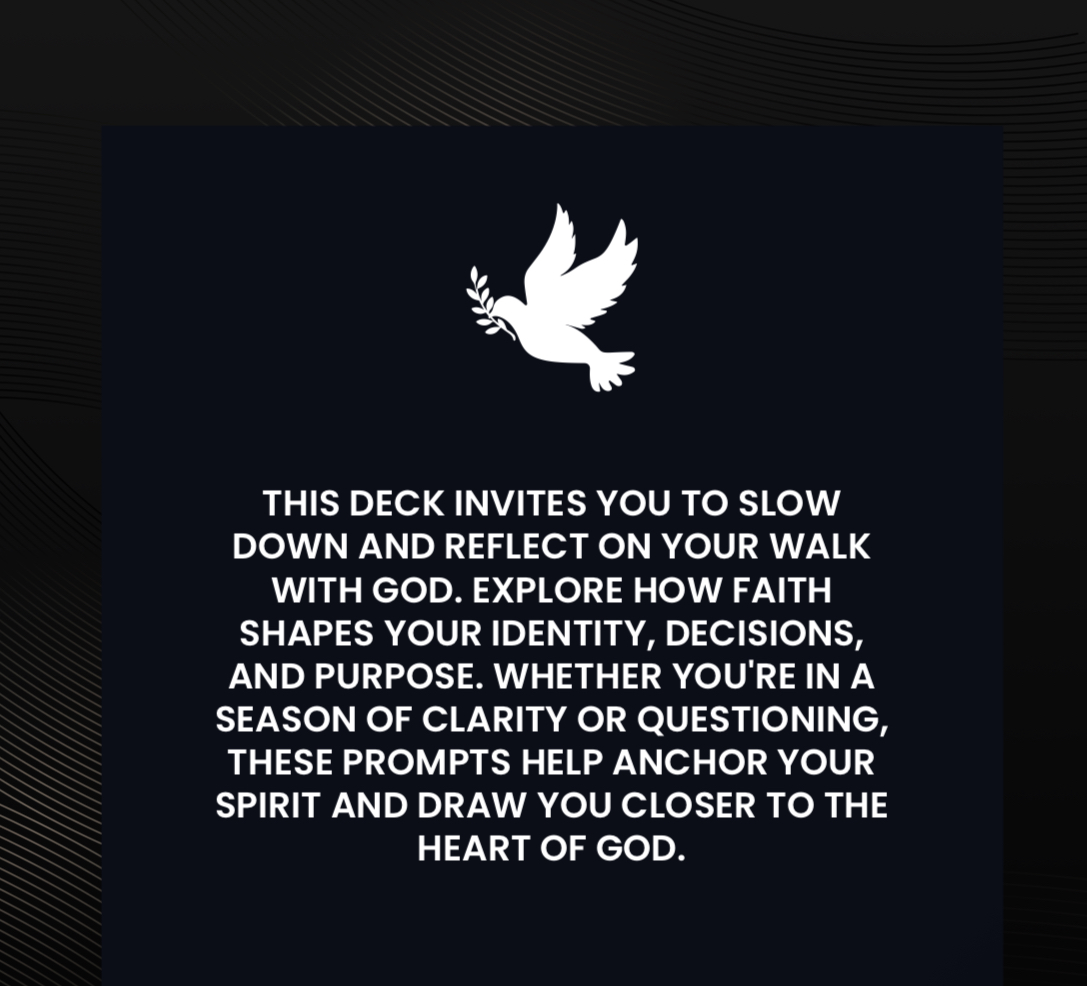 To create intentional spaces for connection, reflection, and growth through thoughtful questions that explore spiritual, mental, emotional, physical, financial, and relational aspects of life.